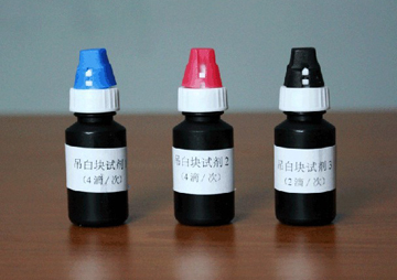 2. 取1mL上清液至1.5ml離心管中,加入4滴試劑1,4滴試劑2,蓋塞后混勻,1分鐘后,加2滴試劑3,搖勻,5~10分鐘內(nèi)與標準比色卡進行顏色比對。