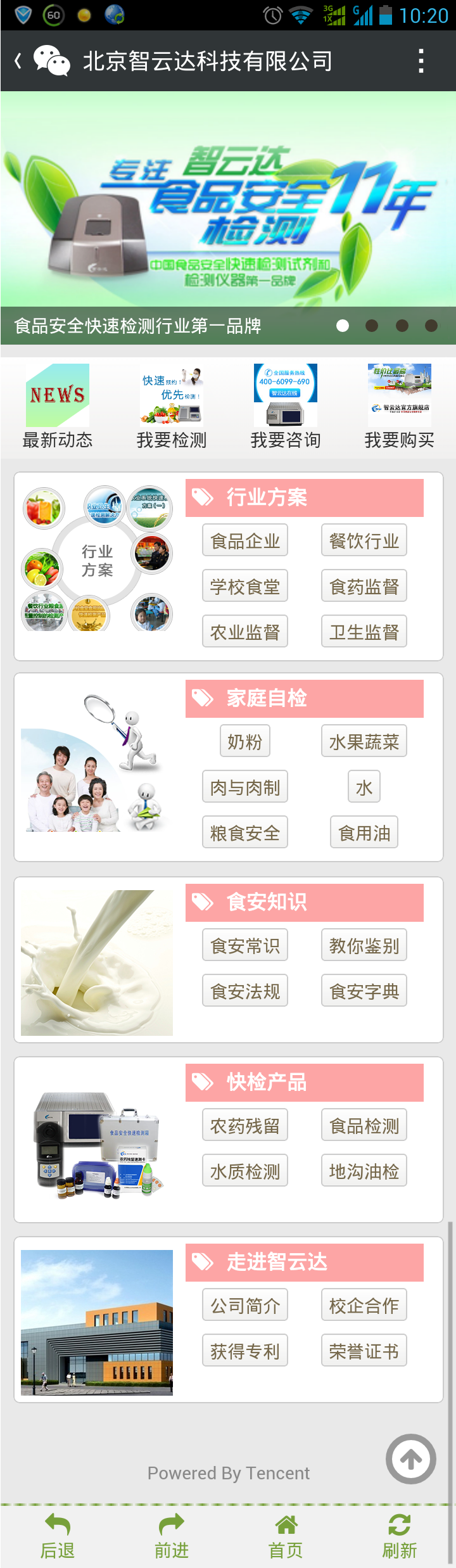 智云達(dá)微信公眾服務(wù)號(hào)已經(jīng)開通,與官網(wǎng)同步的微官網(wǎng)能為用戶提供最新的食安資訊與食安知識(shí),第一時(shí)間同步公司動(dòng)態(tài)、新品發(fā)布、電商活動(dòng)。倘若您有疑似食物安全問(wèn)題,可以預(yù)約智云達(dá)食品安全檢測(cè)消費(fèi)者體驗(yàn)中心,我們?yōu)槟赓M(fèi)檢測(cè);遇到家庭食安問(wèn)題,您可以隨時(shí)掌上咨詢,我們即時(shí)為您解答;食品企業(yè)、餐飲企業(yè)、學(xué)校食堂、食藥監(jiān)督、農(nóng)業(yè)監(jiān)督、衛(wèi)生監(jiān)督解決食品安全隱患,只需一通電話便可索取您所需要的解決方案,倘若您有心儀的檢測(cè)產(chǎn)品,可在京東一站式購(gòu)買,我們竭誠(chéng)為您服務(wù)。