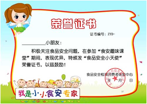 活動(dòng)結(jié)束后,我們體驗(yàn)中心的老師還為參加活動(dòng)的同學(xué)準(zhǔn)備了食安天使小證書。我們的趣味課堂不是要大家不要吃零食,遠(yuǎn)離帶有色彩的食品,而是讓大家知道這些食品中可能隱藏的健康危害,適量食用,最后同學(xué)們都收獲滿滿。