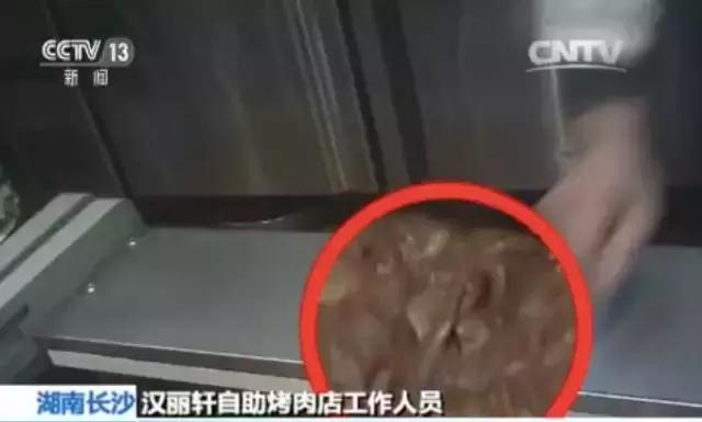 再來回顧一下,去年12月,湖南經(jīng)視記者臥底長(zhǎng)沙一家漢麗軒門店,就發(fā)現(xiàn)這家49元隨便吃的自助烤肉店,用鴨肉冒充牛肉,經(jīng)過特殊醬料腌制后,顧客根本不會(huì)察覺。