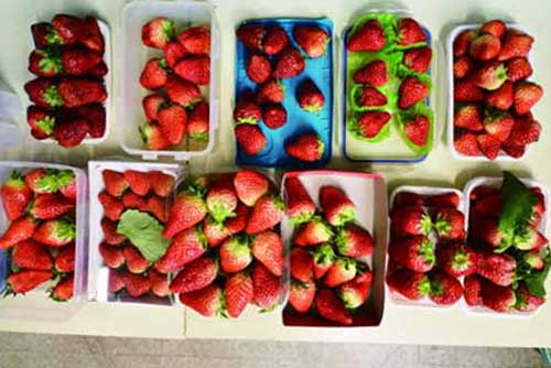 樣品來源:東四環(huán)附近的小攤、街邊攤7份,海淀附近的小攤4份,包括紅顏、豐香、甜查理幾個(gè)品種。