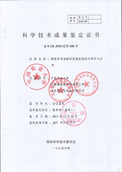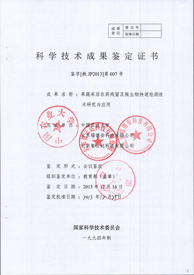 最終,智云達(dá)參與完成的“果蔬采后農(nóng)藥殘留及微生物快速檢測(cè)技術(shù)研究與應(yīng)用”、 “精煉食用油摻偽快速檢測(cè)技術(shù)研究與應(yīng)用項(xiàng)目”順利通過(guò)教育部科技成果鑒定,教育部已于12月25日向完成單位及各位完成者頒發(fā)了科學(xué)技術(shù)成果鑒定證書(shū),這是對(duì)智云達(dá)研發(fā)能力的極大認(rèn)可,智云達(dá)將加倍努力研發(fā)更多、更好的產(chǎn)品以保障我國(guó)食品安全,使智云達(dá)真正成為行業(yè)研發(fā)的領(lǐng)導(dǎo)者和行業(yè)第一品牌。