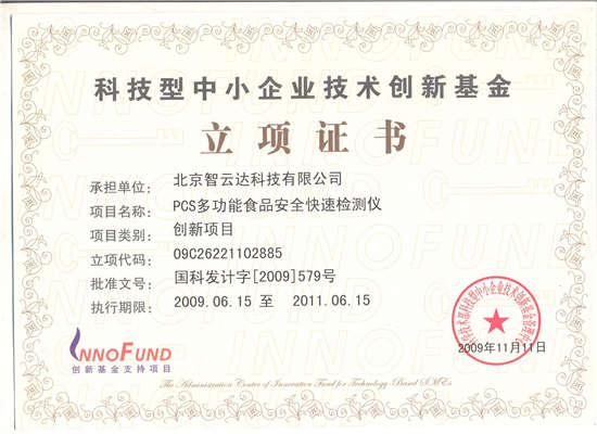 科技型中小企業(yè)技術(shù)創(chuàng)新基金立項(xiàng)證書(shū)