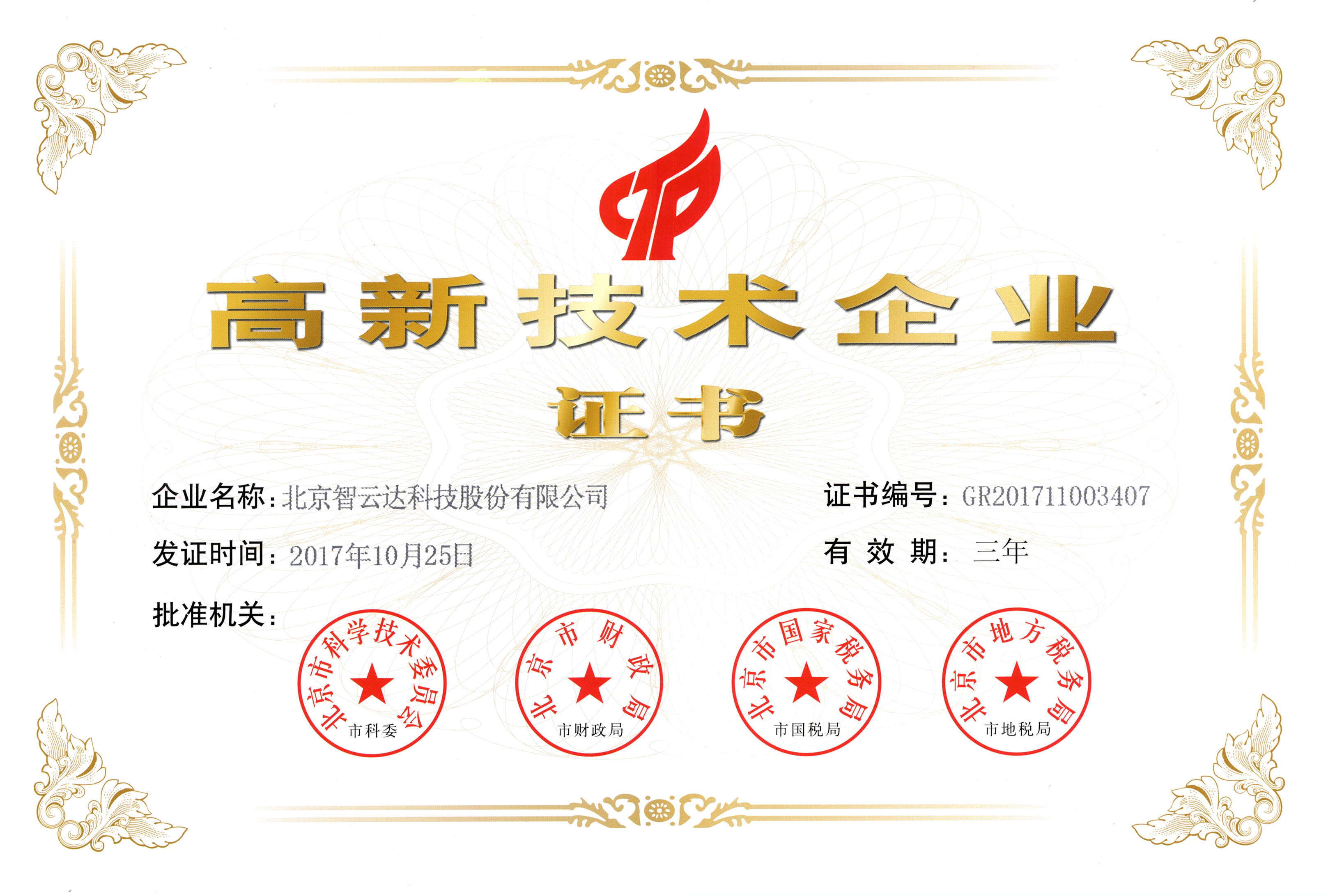 高新技術(shù)企業(yè)證書(shū)