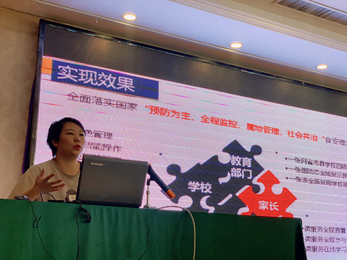 北京智云達(dá)資深產(chǎn)品經(jīng)理錢瑞,為各位參訓(xùn)學(xué)員分享了智云達(dá)在校園餐飲食品安全保障中的智能化解決方案,得到了省教育廳領(lǐng)導(dǎo)的認(rèn)可。智云達(dá)作為國內(nèi)領(lǐng)先的食品安全快檢產(chǎn)品、檢測服務(wù)以及信息化構(gòu)建的供應(yīng)商及服務(wù)商,為校園餐飲食品營養(yǎng)與安全提供保障,打造了集“食品溯源-明廚亮灶-快速檢測-校園餐飲營養(yǎng)與安全監(jiān)管-第三方檢測服務(wù)-食品安全保險(xiǎn)”于一體的智能化系統(tǒng),可實(shí)現(xiàn)可視感知、節(jié)點(diǎn)預(yù)警、過程監(jiān)督、事后追溯的綜合保障。