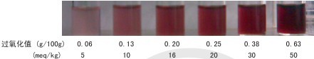 利用食用油氧化所生成的過(guò)氧化物與檢測(cè)試劑發(fā)生顯色反應(yīng),食用油過(guò)氧化值越高,顏色越深。