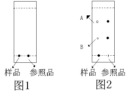 使用紫外燈在陰暗環(huán)境下近距離照射的硅膠板如圖2,若位置A或B有點(diǎn)存在即說(shuō)明有磺脲類(lèi)物質(zhì)(除A和B 位置之外,其他位置的點(diǎn)與本次測(cè)試無(wú)關(guān))。