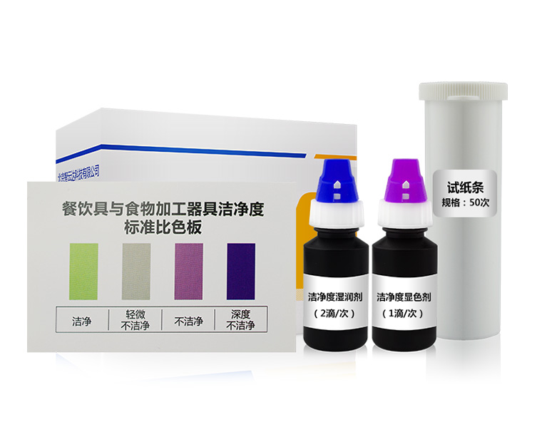 蛋白質(zhì)和糖類是微生物滋生繁衍的溫床,同時(shí)也是細(xì)菌菌體的組成部分,餐飲具或食物加工器具上遺留或污染的蛋白質(zhì)或糖類物質(zhì),可與特定試劑反應(yīng)出現(xiàn)不同顏色,由此可通過與對(duì)照色卡比對(duì)判斷被檢物體表面潔凈的程度。