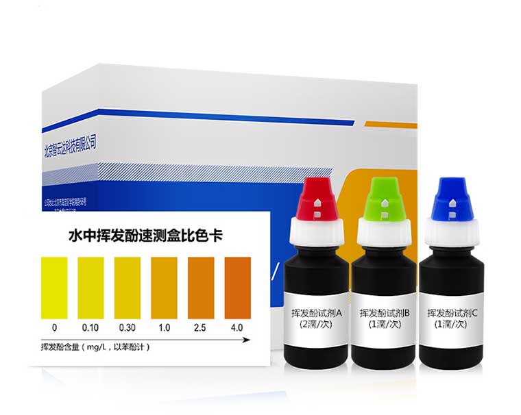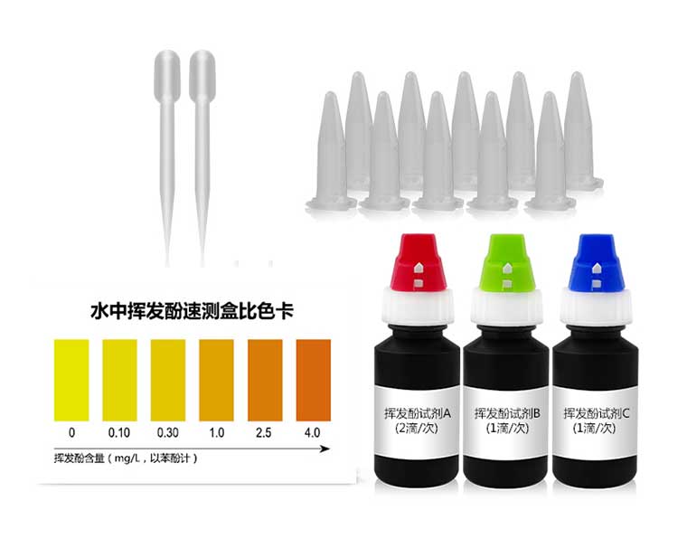 水中揮發(fā)酚與檢測試劑反應生成紅色化合物,含量越高顏色越偏紅。