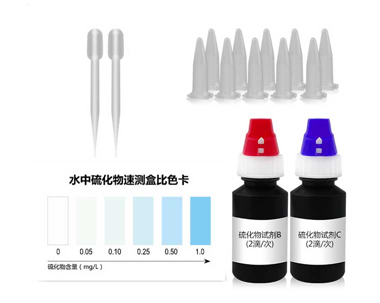水中硫化物與檢測試劑反應(yīng)生成藍(lán)色化合物,含量越高藍(lán)色越深。