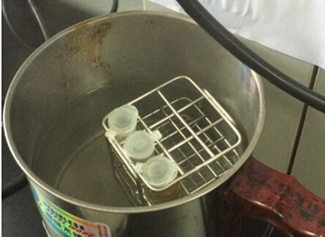 3.將樣品顯色管放入沸水浴中加熱 5 分鐘,取出,再加入 1.5ml 蒸餾水(或純凈水),蓋緊上蓋,上下?lián)u動(dòng)3次。