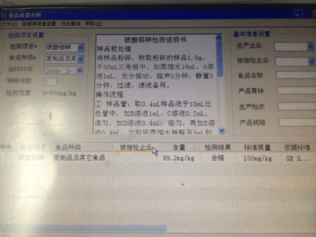5、放入智云達(dá)SMART-02F多功能食品安全檢測儀中檢測,檢測結(jié)果:油條中鋁含量合格,為89.2mg/kg,小于國家標(biāo)準(zhǔn)限量100mg/kg。