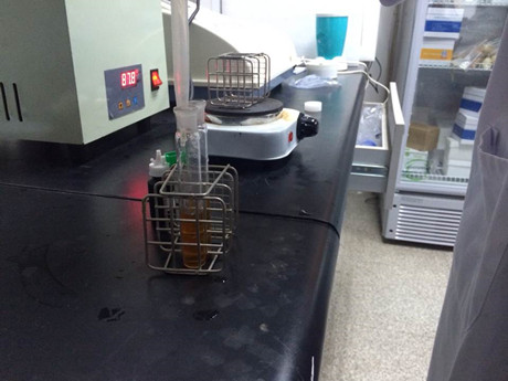 實(shí)驗(yàn)人員取 2g樣品放入比色管中,加入乙酸乙酯,充分振搖,靜置,取上清液于試管中或表面皿上,在 85℃左右水浴中加熱 ,揮干余液,放至室溫后,加入 1mL 的純凈水充分溶解殘渣,加入毒鼠強(qiáng)試劑,輕輕搖動后,將試管放入 90℃以上水浴中,加熱 5min 后取出,觀察顏色變化。