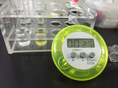 往吹干的比色管中加入3ml緩沖液、50ul酶、20ul顯色劑,振蕩混合后作為樣品管,此外取一根干凈比色管加入3ml緩沖液、50ul酶、20ul顯色劑,振蕩混合后作為對(duì)照管,兩管靜置10min;