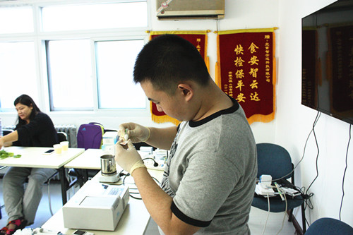 下午由河北農(nóng)業(yè)大學(xué)食品質(zhì)量與安全專業(yè)于鳴訓(xùn)講師帶領(lǐng)學(xué)員自己動(dòng)手操作檢測(cè)了油菜中的農(nóng)藥殘留,牛奶中三聚氰胺檢測(cè)、枸杞二氧化硫檢測(cè)、亞硝酸鹽檢測(cè),地溝油檢測(cè)等。學(xué)員熱情度很高,課程結(jié)束了還意猶未盡,在輕松的學(xué)習(xí)氛圍中進(jìn)一步了解快檢,應(yīng)用快檢。