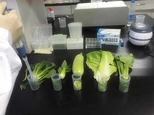 陳女士用于自己的大棚,全綠色無污染,但是她還是覺得做個(gè)檢測(cè)會(huì)比較放心,因此她將大棚中現(xiàn)產(chǎn)的幾種蔬菜送到中心進(jìn)行農(nóng)殘檢測(cè)。