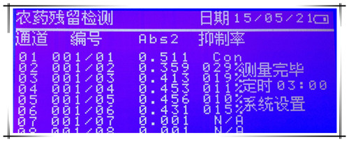 酶抑制法:酶具有單一性和高效性,當(dāng)農(nóng)藥存在時(shí),將會(huì)抑制酶的活性,使得酶與底物反應(yīng)減慢,酶與底物反應(yīng)將會(huì)生成一種有色物質(zhì),當(dāng)酶被抑制的時(shí)候,有色物質(zhì)生成減少,通過對(duì)比樣本和對(duì)照可以在分光光度計(jì)中得到顏色變化比對(duì),因此知道農(nóng)藥是否殘留。