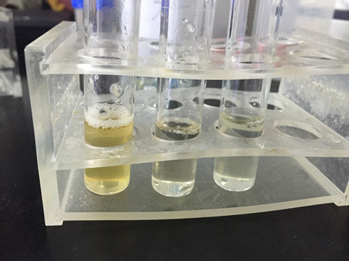 最后觀察實(shí)驗(yàn)結(jié)果,發(fā)現(xiàn)三種蜂蜜稀釋液都沒(méi)有變色情況發(fā)生,因此判定沒(méi)有摻雜淀粉和糊精。