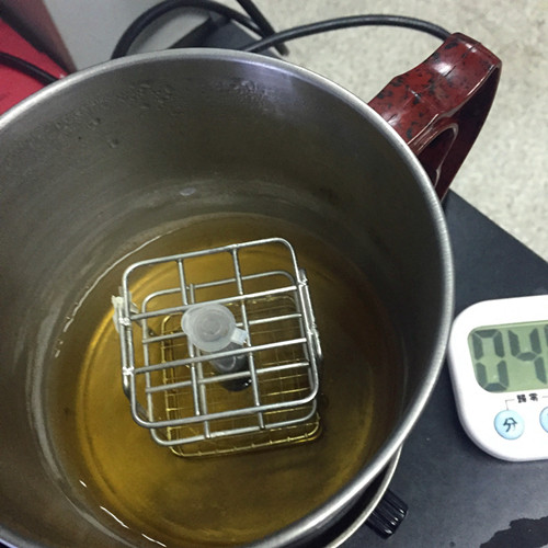 蓋上離心管蓋,放入沸水浴中的托架上加熱 2 分鐘后取出,上下?lián)u動 6 次作為待測液。