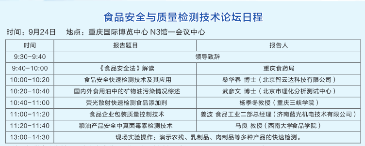 由“食品安全快速檢測網(wǎng)”(www.china12315.com.cn)舉辦,北京智云達提供技術(shù)支持開展的《食品安全快檢檢測培訓班》這次培訓班將于2015年9月24日在重慶國際展覽中心開展。