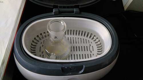(1) 樣品處理:稱取粉碎的樣品1.0g,于50mL三角瓶中,加蒸餾水19mL,A溶液1mL,充分搖動(dòng),超聲5分鐘,靜置5分鐘,過濾,濾液備用。