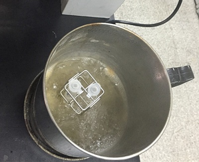 取1 mL蒸餾水于離心管中,再用0.2 mL塑料吸管取已攪拌均勻的蜂蜜1滴加到離心管中。 蓋上離心管蓋,放入沸水浴中的托架上加熱2分鐘后取出,上下?lián)u動6次作為待測液。
