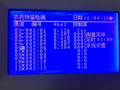 檢測(cè)結(jié)果如圖所示,結(jié)果以酶被抑制的程度,即抑制率表示。樣品中農(nóng)藥殘留符合國(guó)家標(biāo)準(zhǔn)。