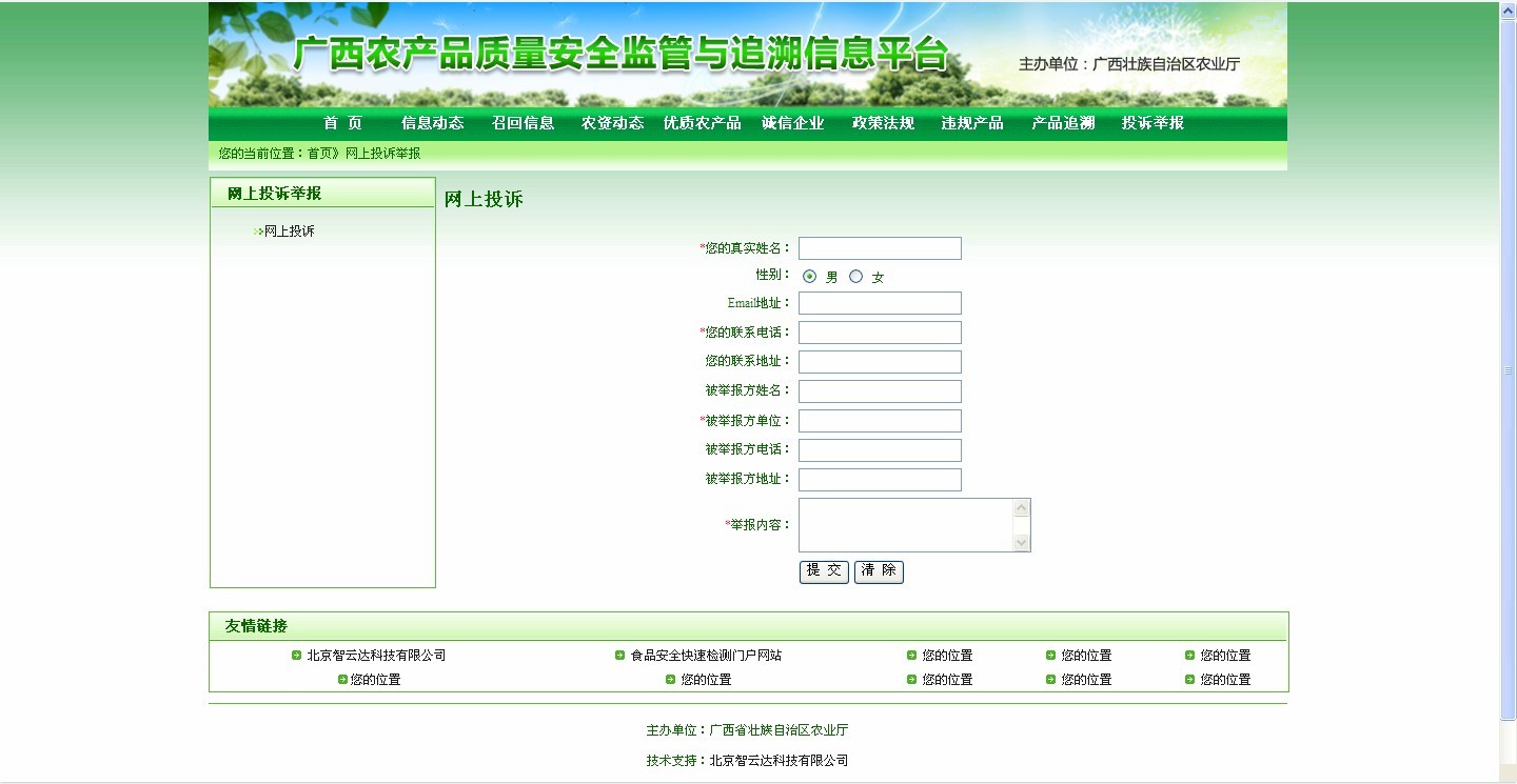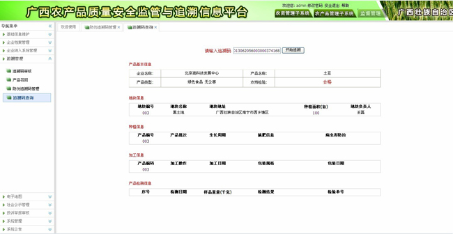 本系統(tǒng)是自治區(qū)農(nóng)產(chǎn)品質(zhì)量安全信息統(tǒng)一查詢和發(fā)布的平臺(tái),根據(jù)追溯碼,消費(fèi)者能夠通過短信、電話、網(wǎng)上查詢等方式,快捷地查詢到農(nóng)產(chǎn)品全程的質(zhì)量安全信息。企業(yè)農(nóng)產(chǎn)品溯源信息顯示界面可定制。