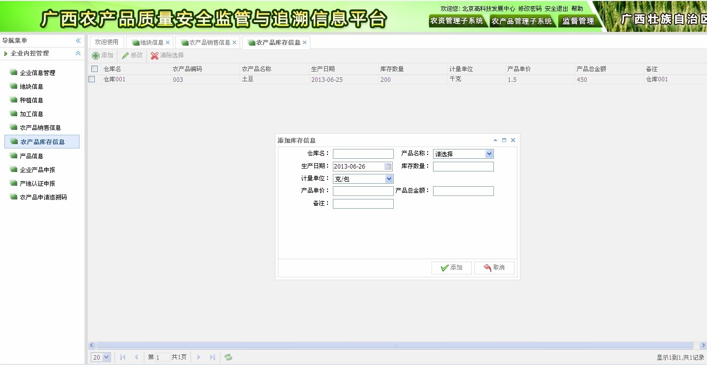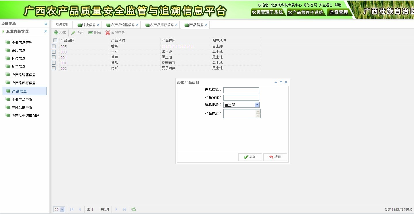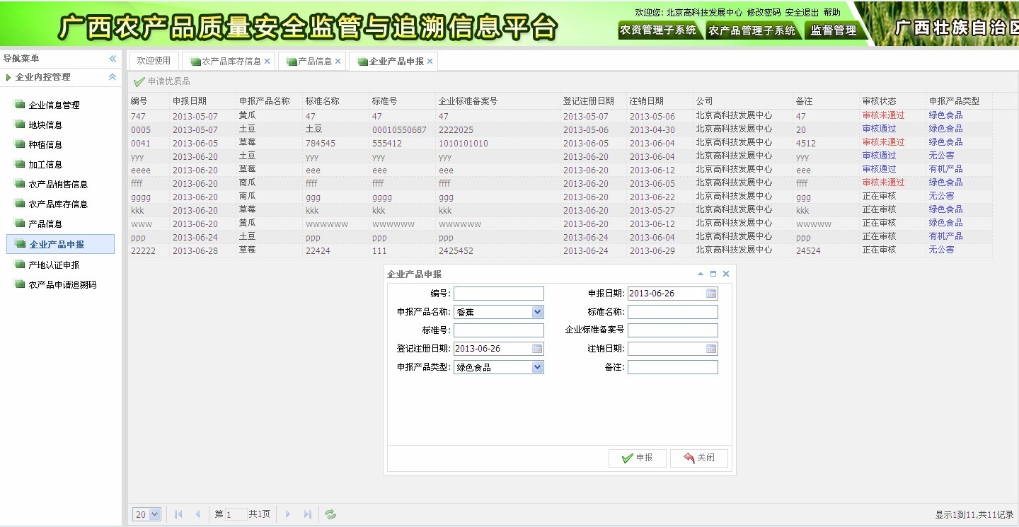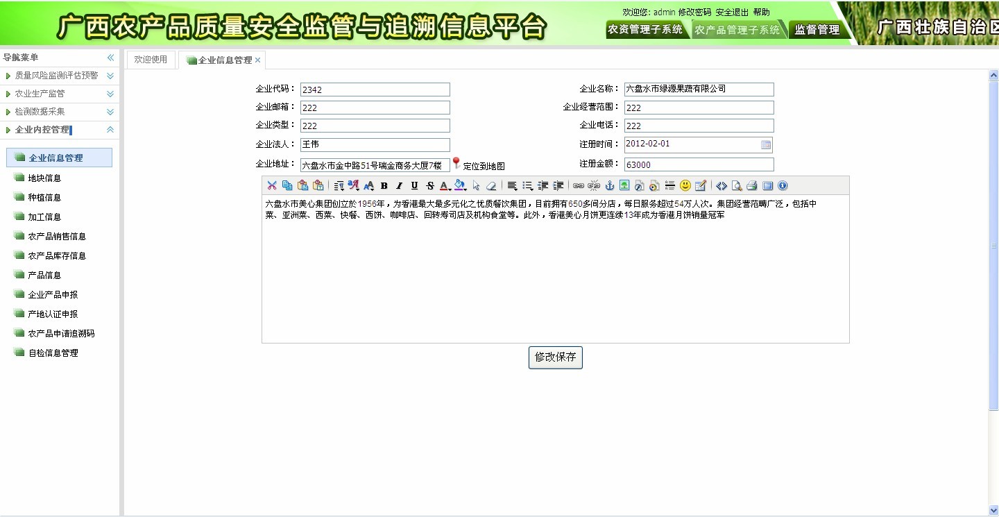 ? 企業(yè)信息管理:基本資質(zhì)、產(chǎn)地環(huán)境、生產(chǎn)基地、管理制度等;