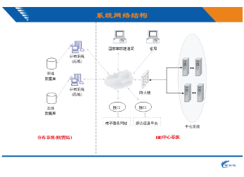 中心系統(tǒng)采取C/S結(jié)構(gòu),分布系統(tǒng)使用單機版,硬件設(shè)備低, 投資少,部署簡單。三方數(shù)據(jù)通過電子郵件上報,信息完整,安全,便捷,把復(fù)雜的業(yè)務(wù)流程簡單化,使的從未接觸此業(yè)務(wù)的人員能很快上手??傮w結(jié)構(gòu)圖如下圖: